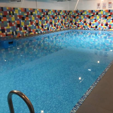 It was a wonderful experience. I learned a lot from the 20 classes I attended. The trainers and staff were very professional. The water was clear and had mild chemicals. The pool was 50 meters x 25 meters and had a depth range of 5.2 ft to 6.8 ft.